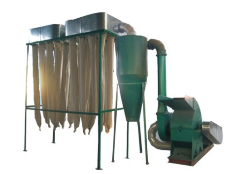 该机由上下机体转子、锤片、筛网、电机、风机、旋扩分离下料器、除尘器等组成。工作时,由人工或机械喂入机构将物料由进料口均匀地喂入粉碎室,粉碎室内有高速旋转的锤片,上机体内装有动刀和齿板,加入的物料在锤片的强烈打击及锤片与齿板之间的撕裂和搓擦等作用下迅速被粉碎成粉状,由于离心力和粉碎机下腔负压的作用,细碎的物料通过筛孔落到下腔,之后被风机吸入,又由风机送到旋扩分离器、下料器进行分离、卸料、装袋,余风由除尘器除尘布袋过滤并泻掉。